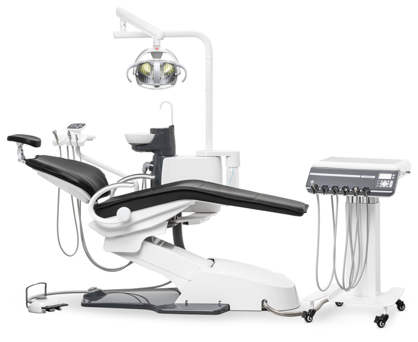 • Эксклюзивный дизайн модуля врача с дополнительным столом для инструментов, встраиваемый электрический мотор со светом и скейлер со светом.